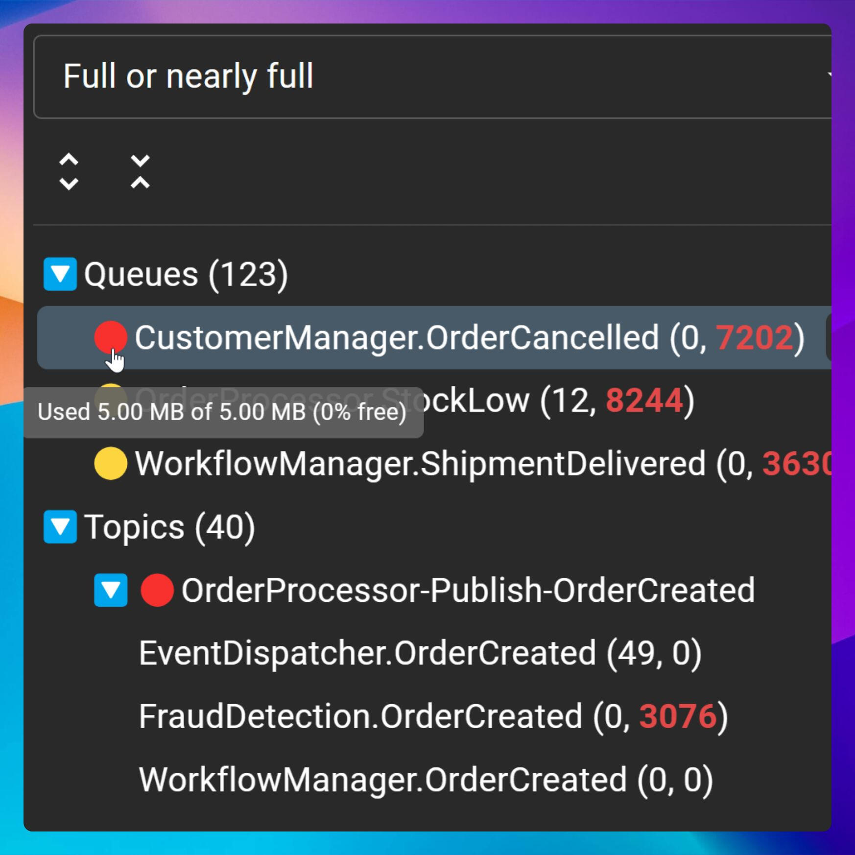 Notice full queues, overflowing topics, and dead-lettered messages at a glance—without switching tools.